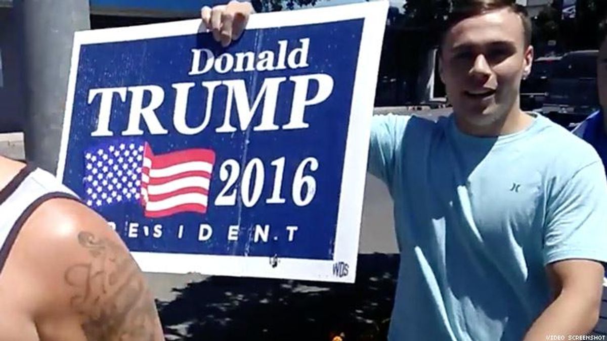 The 18-year-old was filmed holding a pro-Donald Trump sign, making an obscene gesture, and yelling "Fuck off, f****t!" at a march in Modesto, Calif., aimed at protesting the Trump administration's immigration policy that involves separating families at the southern U.S. border.