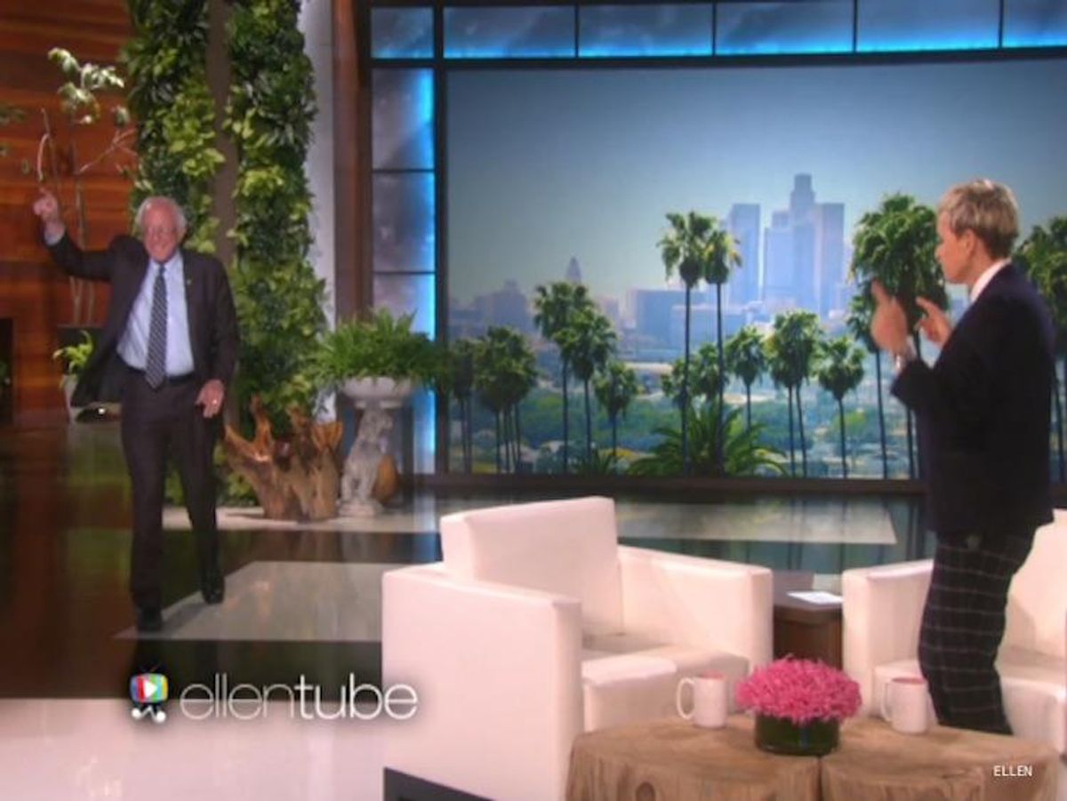 Bernie Sanders danced his way onto the Ellen Show and had her audience roaring in laughter.