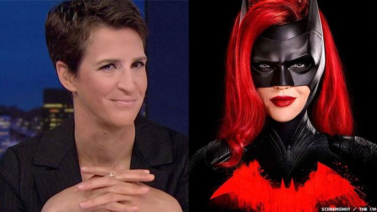 The good news is that bespectacled lesbian superhero of cable news Rachel Maddow is headed to Gotham City for a stint on the CW's Batwoman, which stars Ruby Rose as the lesbian winged avenger.