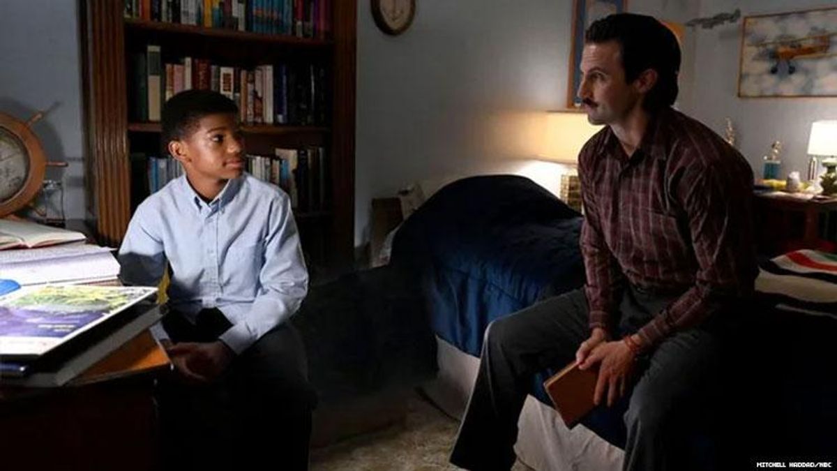 In the first timeline, set around 1990, Jack (Milo Ventimiglia), invites his adopted son's teacher, Mr. Reynolds (Brandon Scott), and his wife to dine with his family. Jack feels insecure that Randall looks up to Reynolds, who has stepped in to mentor the boy as a Black person in a predominantly white educational space. The meal simmers with Jack's resentment -- and a few snide remarks -- rooted in his feelings of inadequacy of being unable to provide his son access to Black culture.