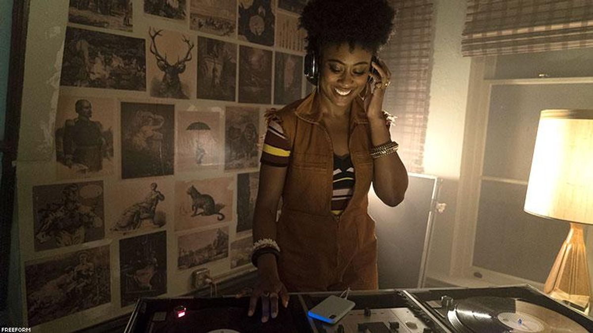 Step into the character Malika's room on Good Trouble, Freeform's edgier spin-off of The Fosters, and hanging on the wall is the iconic photo of Elizabeth Eckford, who in 1957 (as part of the Little Rock Nine) became one of the first students of color to attend Little Rock Central High School even as a mob of primarily white women hounded her. Malika resides at the Coterie, the communal living space where the Adams Foster sisters Callie and Mariana land upon their arrival in downtown Los Angeles post-graduation, and her picture of Eckford is an ever-present reminder to viewers that her work as a Black Lives Matter activist is part of a continuum of civil rights work. And it can't be extricated from the intersections of who Malika is.