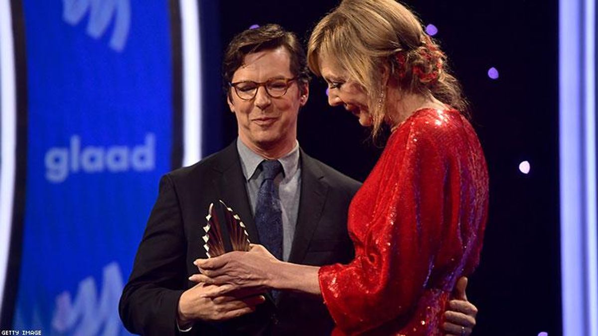 Of course, Hayes was not "an openly LGBT media professional" until he came out in a 2010 interview in The Advocate. During the original run of Will & Grace, the actor chose not to discuss his sexual orientation, which may explain why GLAAD waited until 2019 to present him with one of its highest honors.