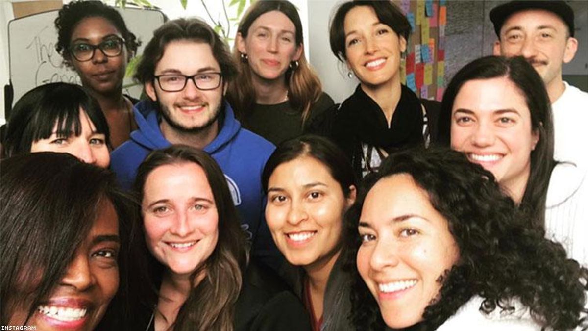 Social media blew up when it was announced in January that the L Word reboot was getting an eight-episode season that would be anchored by original cast members and executive producers Jennifer Beals, Leisha Hailey, and Katherine Moennig. Soon after, original cast member Sarah Shahi, who played the beloved Carmen, announced she would be joining the reboot. While the new series, which will introduce several new characters, won't air until the end of 2019, an Instagram photo from Beals of her with several of the writers is an exciting reminder that it's just a few months off.