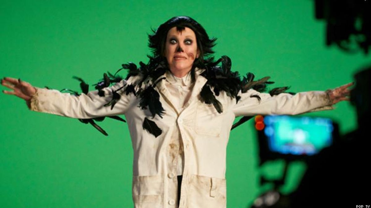 In The Crowening, Moira stars as Dr. Clara Mandrake, the ornithologist at the center of the crow apocalypse in the film directed by someone only known as "Blaire," who allegedly tried to opt out of his contract.