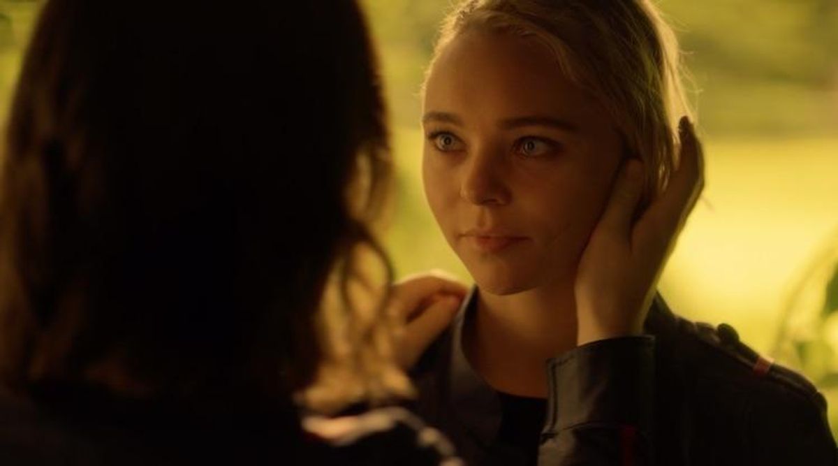 Motherland establishes its queer credentials early in the pilot episode when Raelle meets the mysterious and compelling Scylla (Amalia Holm) and sparks immediately fly. Before the end of the episode, the women have cemented a fiery physical relationship, although it's soon revealed that Scylla is not all that she appears to be.