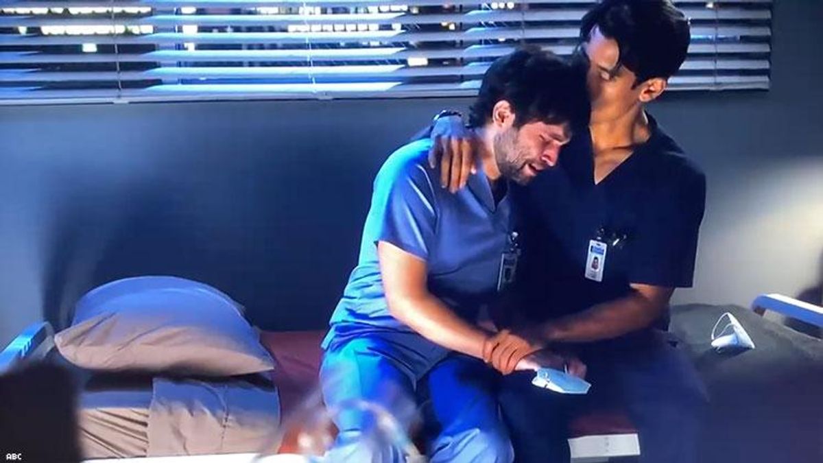 Grey's Anatomy has not shied away from destigmatizing queer identity. The episode began with different shots of lovers in bed, including Schmitt and Kim. Earlier this season, Grey's aired the first oral sex act between two men that acknowledged the pandemic on network TV.