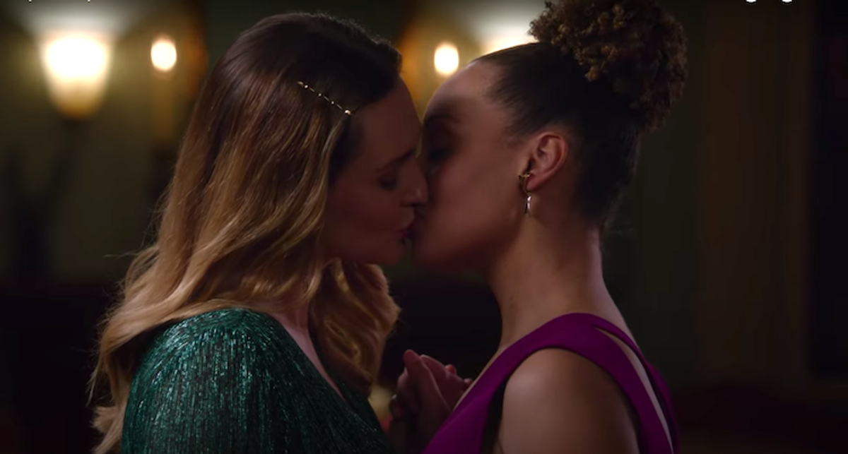 Fresh off her stint as the lesbian sheriff Nicole Haught on Wynonna Earp, Barrell is Joy (with powers of her own), a designer who arrives in town in season 6to renovate the town's Davenport Mansion. She and Zoey, a firefighter, shoot off sparks that lead to the big kiss.