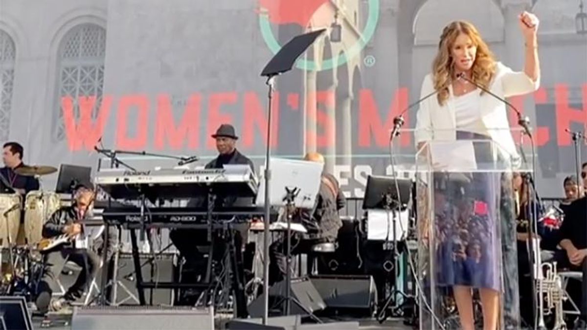 Caitlyn Jenner tried to leave her past association with the Republican Party behind as she took to the stage on Saturday at the Women's March in Los Angeles and spoke out for transgender rights.