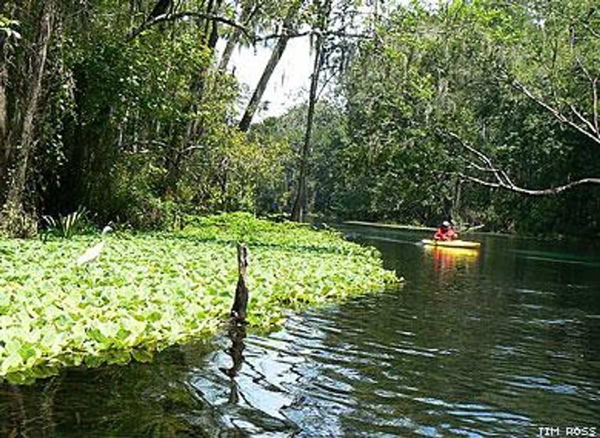 The problem with the Sunshine State is that it has become so urban, so developed, that its great glory--nature--is now confined to disconnected patches. Everywhere you go now, you will find the "real Florida" preserved mostly in state and national parks; there are springs in the Ocala National Forest, for instance, and more northwest of Gainesville. Yet I can't think of one that combines a spring and a river the way the Ichetucknee does. The Ichetucknee begins in the Blue Hole, a cavern of turquoise and gin-colored water, and then meanders past grasses and snails and turtles and trees, through tunnels of green, past cliffs of sand, to join the Santa Fe River and finally the Gulf of Mexico, outside the state park. Whenever I am on the Ichetucknee I think of Lewis Carroll or a painting by Watteau or a landscape by Asher B. Durand as I float equipoised between the enormous sky and crystalline water below.