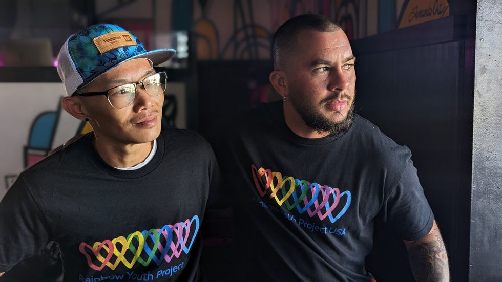 I see Teegan Mauter and Christopher Sederburg, leaders of the Trans Action Committee of the Rainbow Youth Project, sitting to one side of the club nursing their sodas. They are in town with Lance to help support the community during this difficult time. I pull up a chair to ask them something that has been on my mind.