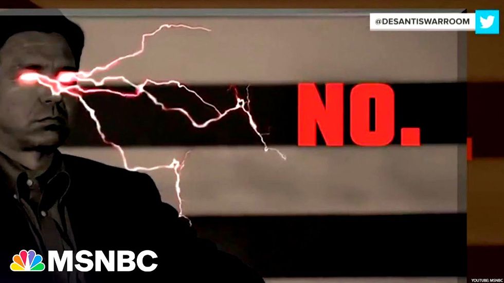 The ad should have just ended with laser beams shooting out of DeSantis's eyes. Why? Because the ad is, I guess, supposed to make DeSantis have super powers like a cyclops in X-Men (A nod to Musk and his "X"?). According to the definition of cyclops vision, "No one could see the Cyclops's eyes directly, because if they saw him, his eyes immediately shot lasers." As a gay man, that is exactly what would happen to me if I dared look into DeSantis's eyes.