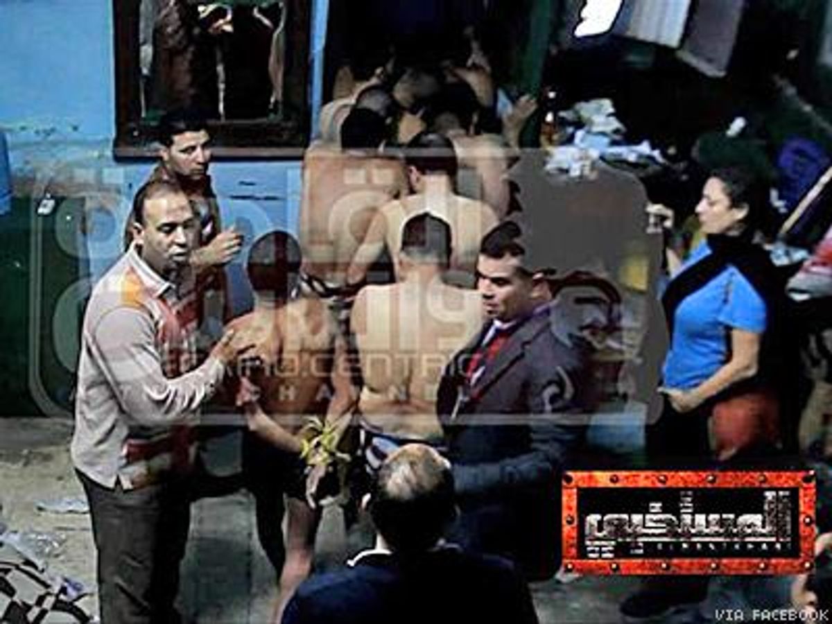 Egyptian police raided a bathhouse in Cairo Sunday night, parading between 25 and 40 terrified, naked, allegedly gay male patrons outside into waiting vans and arresting them for "perversion" and "debauchery," according to multiple media reports.