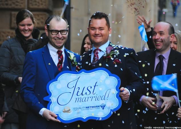 "After many years of campaigning, we are delighted that as of today same-sex marriage is now legal in Scotland," said Tom French, the Equality Network's policy and public affairs coordinator, in a written statement. "We wish all those couples who are getting married today, and those planning to do so in future, all the best."