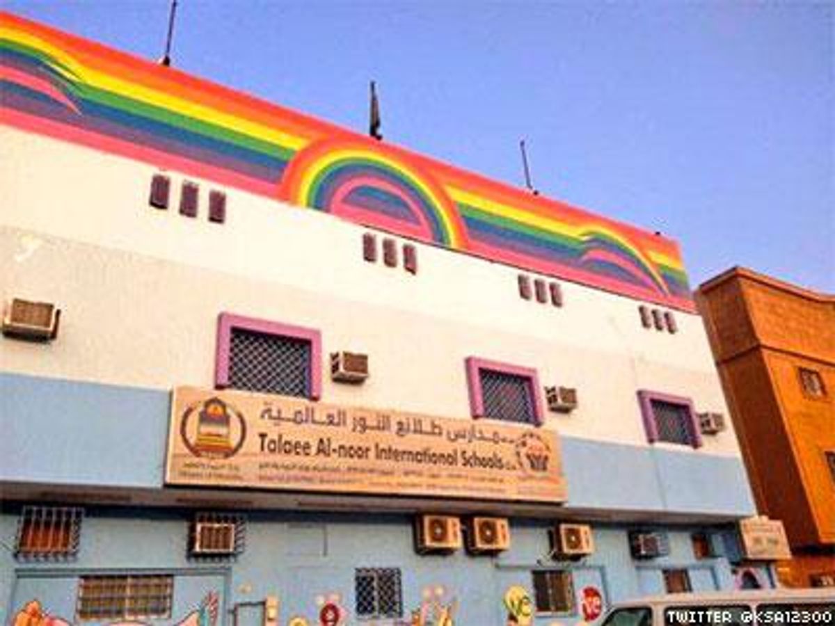 Officials at a Saudi Arabian school were fined approximately $26,600 after the rainbows painted on the building's facade were found to be "emblems of homosexuality."