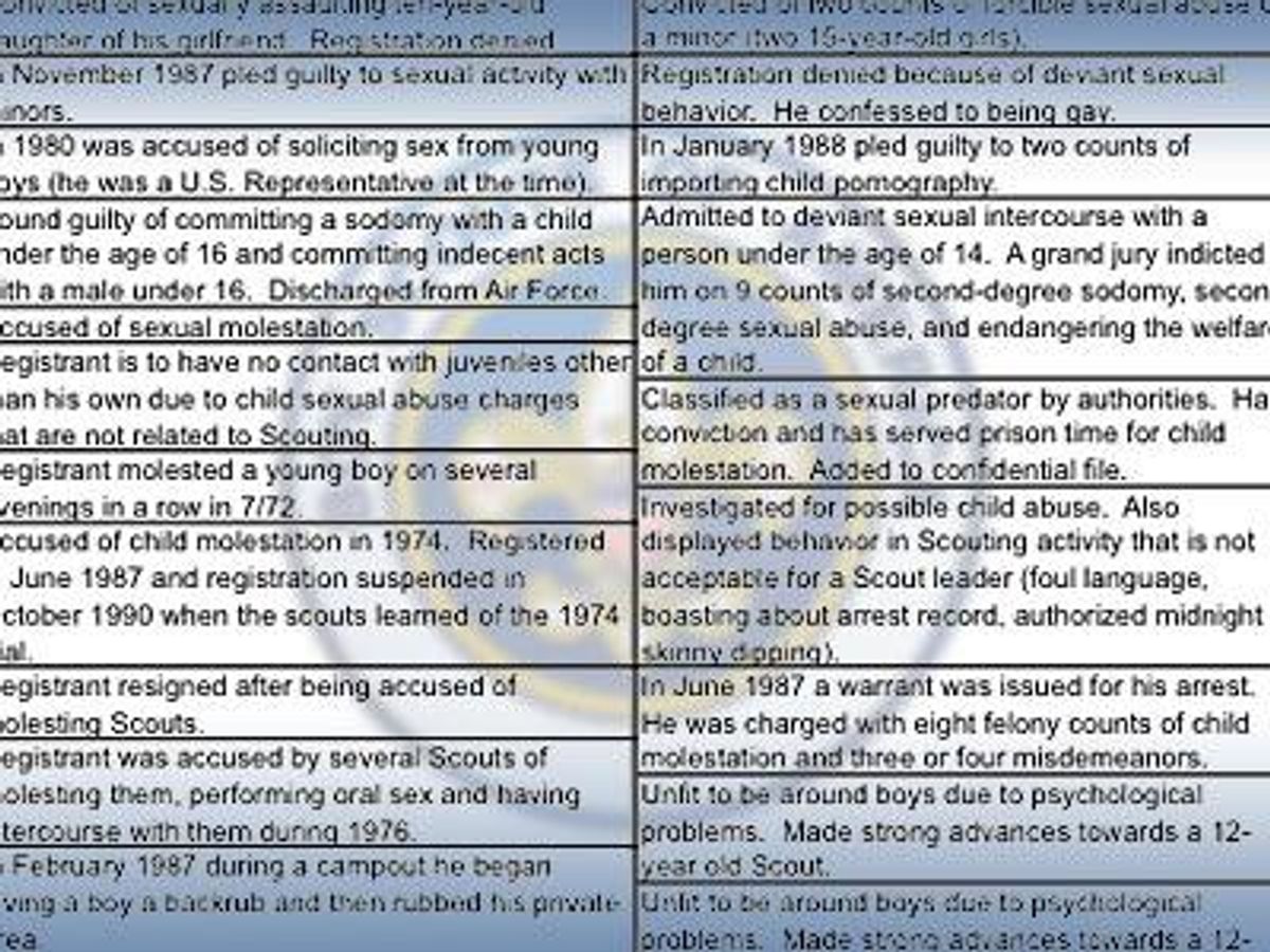 According to another attorney who used the list to prosecute criminal pedophiles, making the names public allows victims to discover whether their assailant was ever reprimanded. "The stories in those files are real little boys and real stories of abuse," Oregon attorney Kelly Clark told The Seattle Times. "And when the public sees these stories in black and white, I think the level of understanding and frustration about sexual abuse in Scouting is going to be significantly elevated."