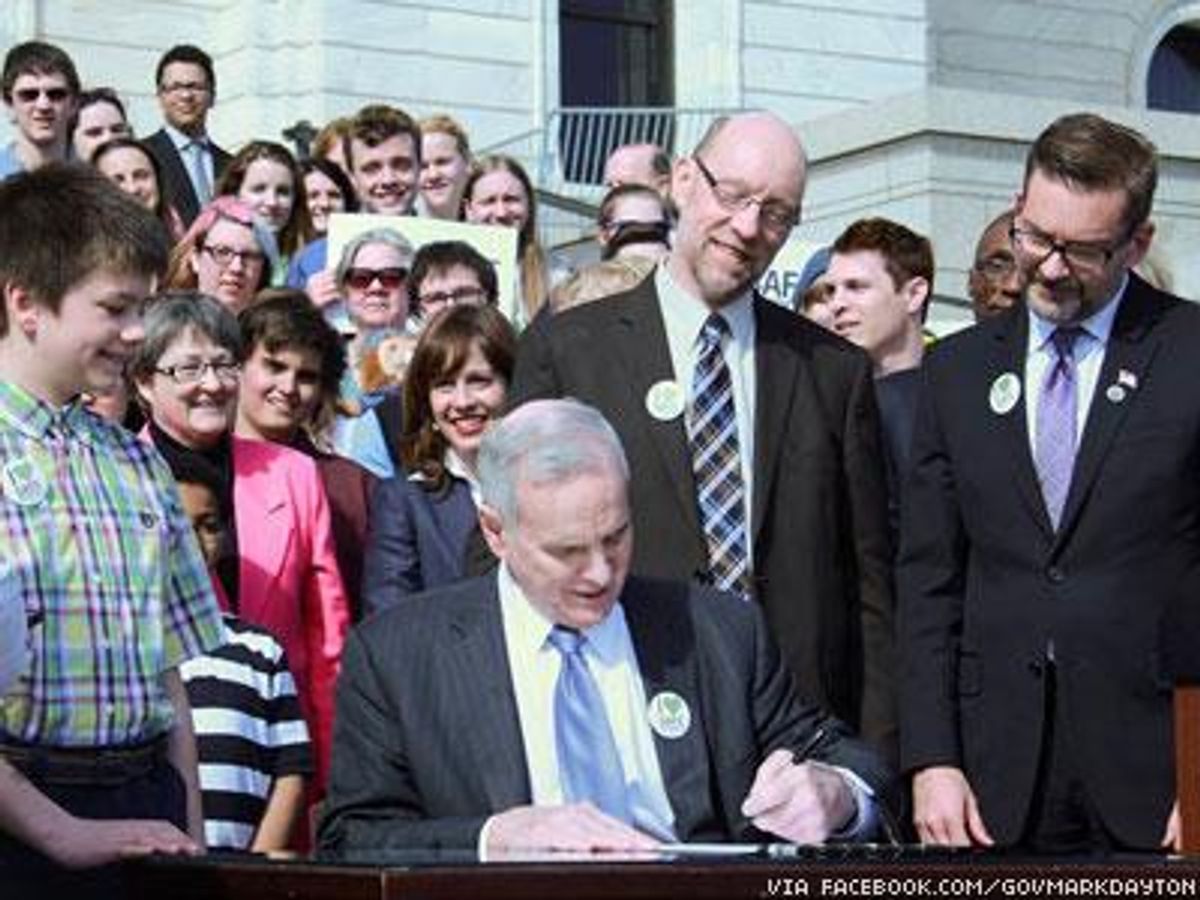 New laws to better protect LGBT students from bullying were signed into law on Wednesday by Minnesota Gov. Mark Dayton.
