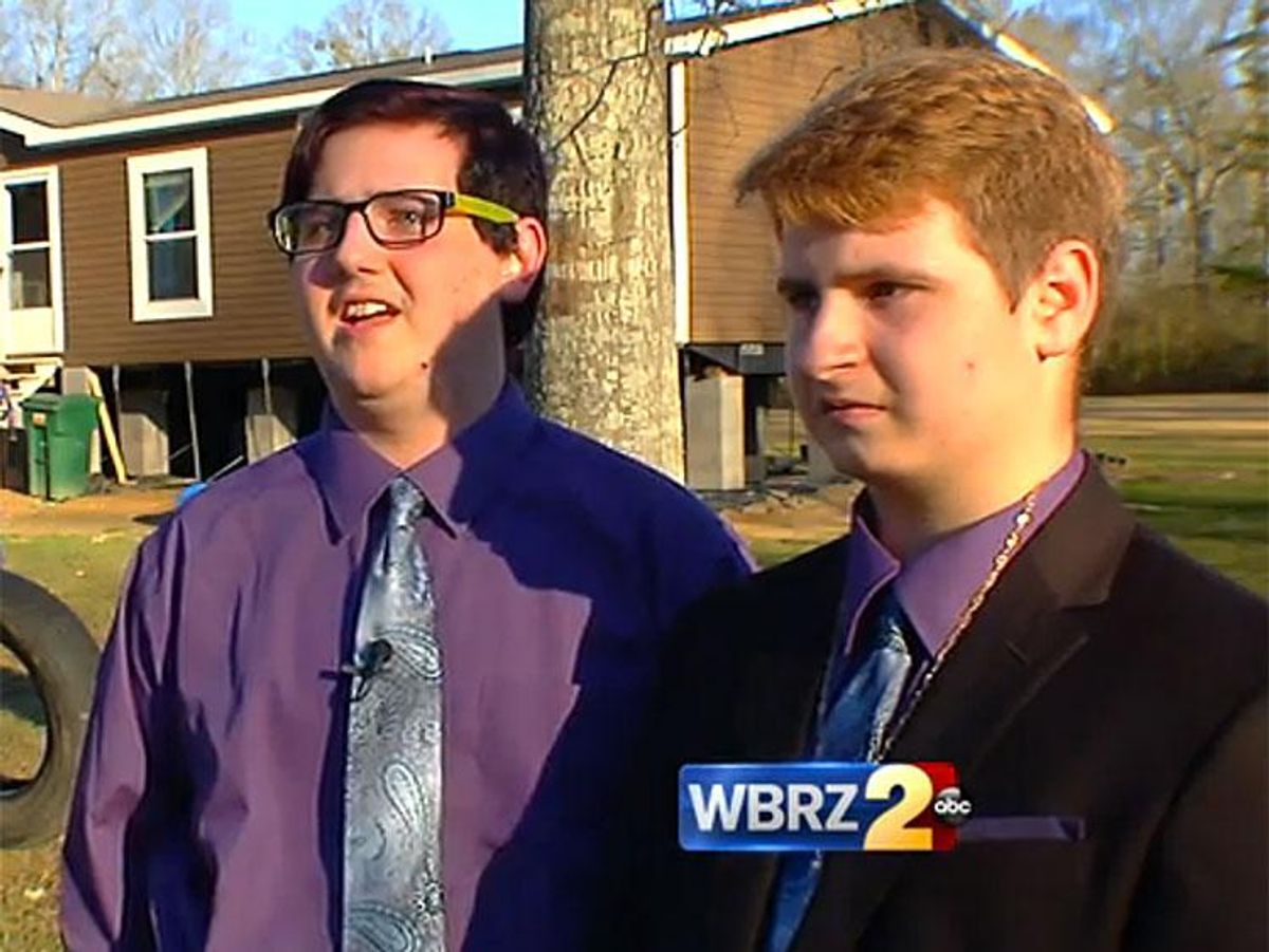 Mother Tamblie Babin said she contacted the station after calling her son Raymond's school. "I asked her why Raymond couldn't take his boyfriend to prom and she said that they didn't allow same sex going to prom together [because] it was against school regulations," Babin told the station.